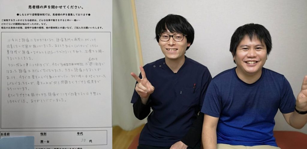 そこで友人に長泉にある【しもとがり姿勢整体院】を紹介してもらいました。